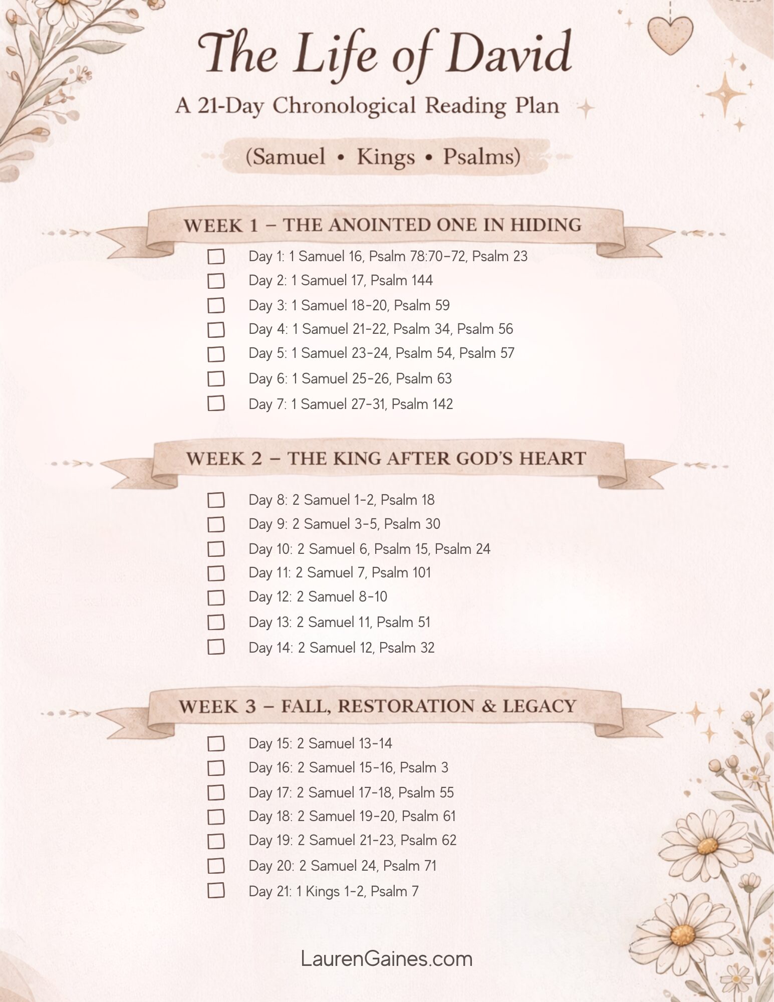 Free 21-Day David Bible Reading Plan - grab it at https://inspired-motherhood.com/wp-content/uploads/2026/01/The-Life-of-David-Reading-Plan.jpg